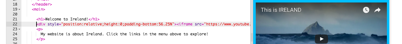 - Then go to your code, and click in the place where you want to put the video, for example after a heading or paragraph. Paste the code by pressing Ctrl (or cmd) and V on your keyboard at the same time, as usual. Don't worry about understanding all the code you just pasted!