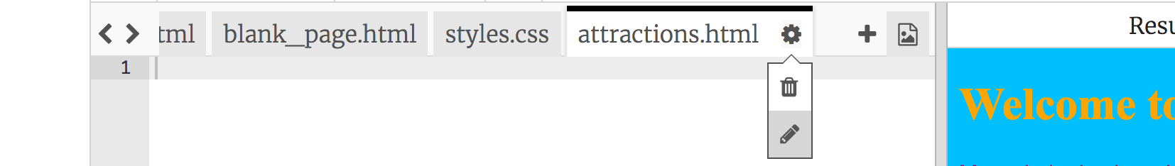 - So you've decided what pages you'd like to have in your website, now let's make them! To create a new web page, you create a new file with a name that ends in .html. At the top of the code panel, click on the + symbol next to the tabs. This will create a new file. Give it a name. Remember, it must end in .html (including the dot!) so that the browser knows it's a web page.
