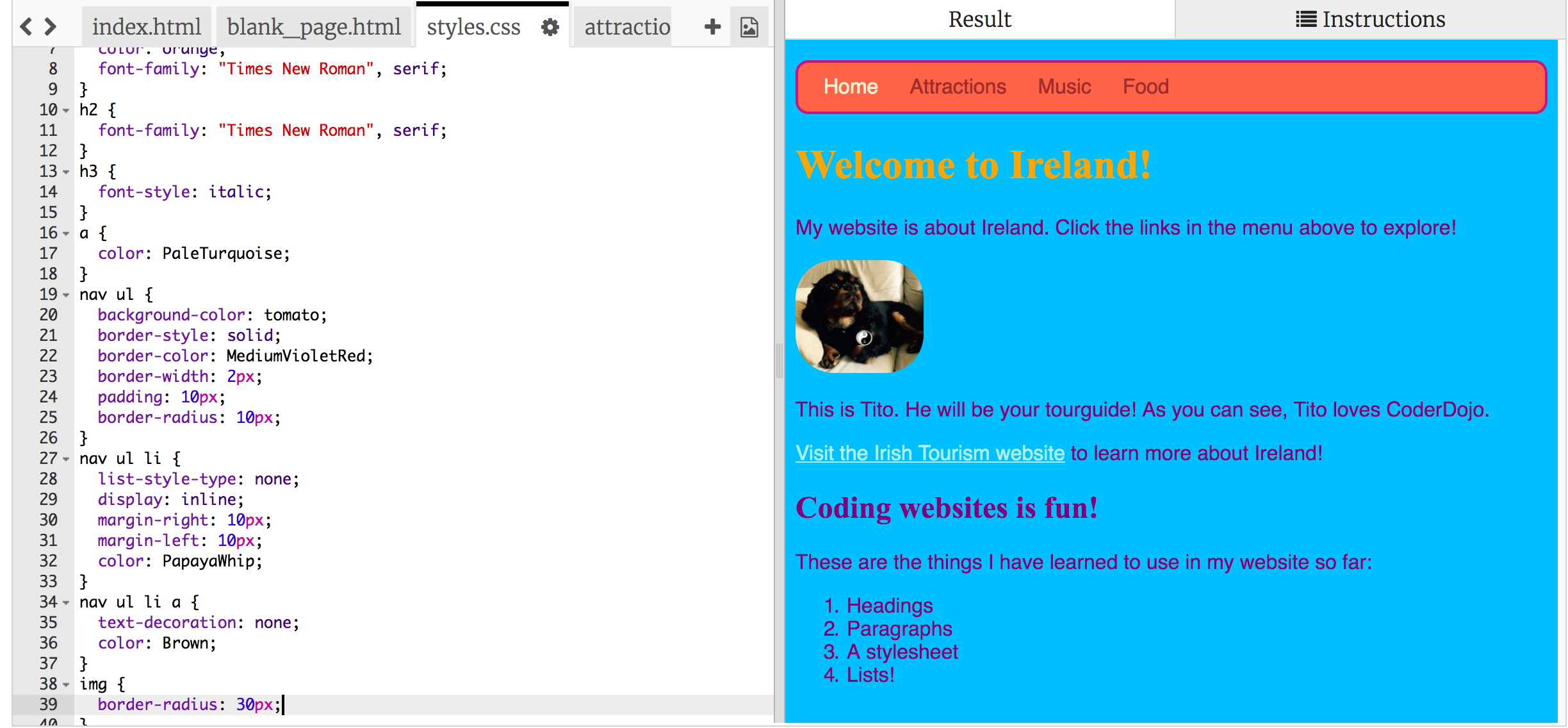 - With CSS, the possibilities for making your menu bar look great are endless. Open the styles.css file again (the place where the magic happens!) Each time you make a change, click Run to see what the website looks like.