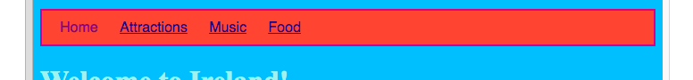 Thenav ul { background-color: tomato; border-style: solid; border-color: MediumVioletRed; border-width: 2px; padding: 10px; }